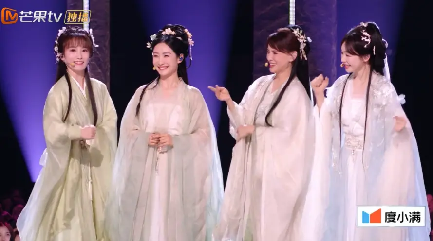 四位姐姐显然关系都不错,大家开开心心上台,互动也十分融洽。